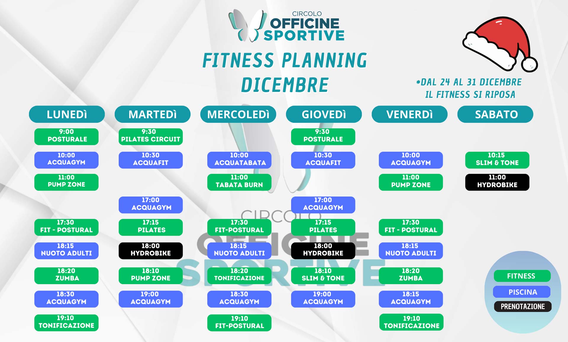 Tutta la programmazione di Officine Sportive: corsi fitness in palestra e in piscina, hydrobike, attività di gruppo, tornei e challenge sui campi da padel, eventi speciali e iniziative stagionali, per vivere il club di Fiumicino ogni giorno in modo diverso